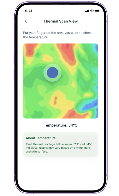 The Thermovision Thermal Camera is your gateway to proactive skin health management. By combining advanced thermal imaging with the convenience of your smartphone, the camera helps you track and monitor temperature variations on your skin, allowing you to detect potential issues before they become visible. You no longer need to rely on guesswork or wait for visible signs of skin issues. Thermovision gives you the tools to track changes that could be the early signs of skin problems, all while ensuring your comfort and safety.
